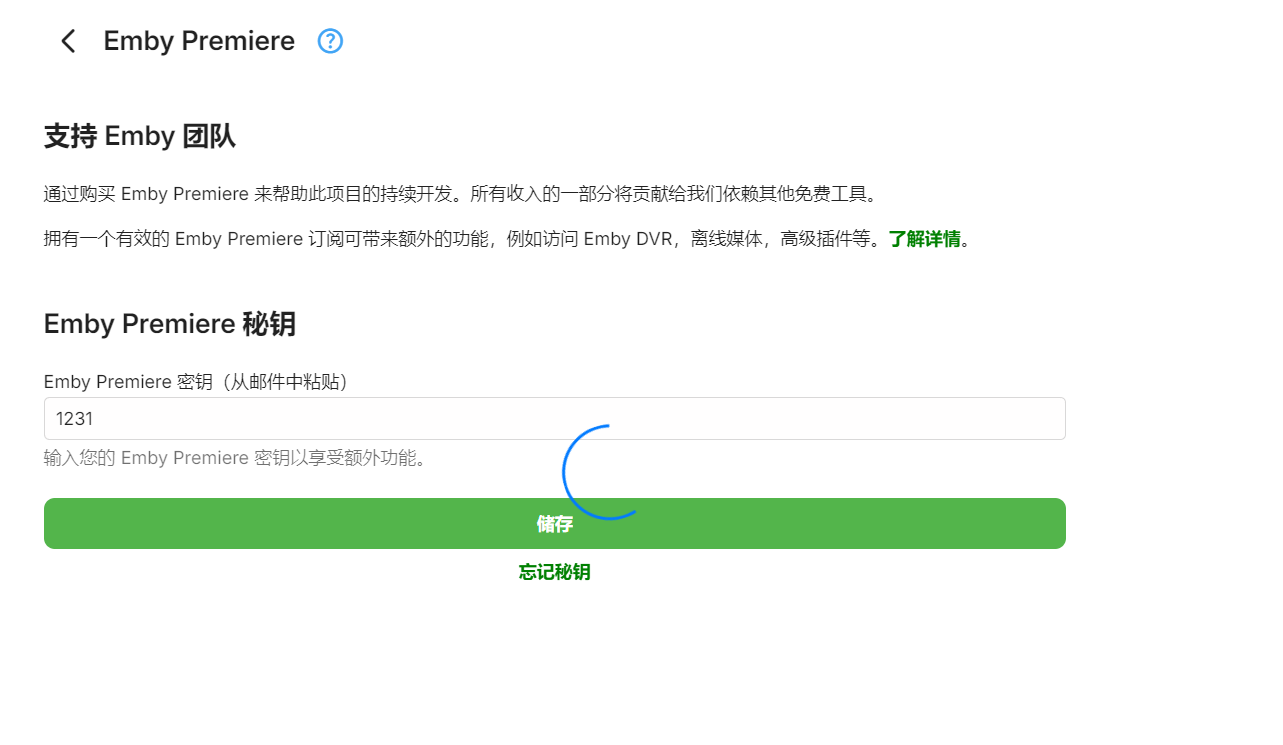 完了在EmbyPremiere秘钥 随便输入点啥确定