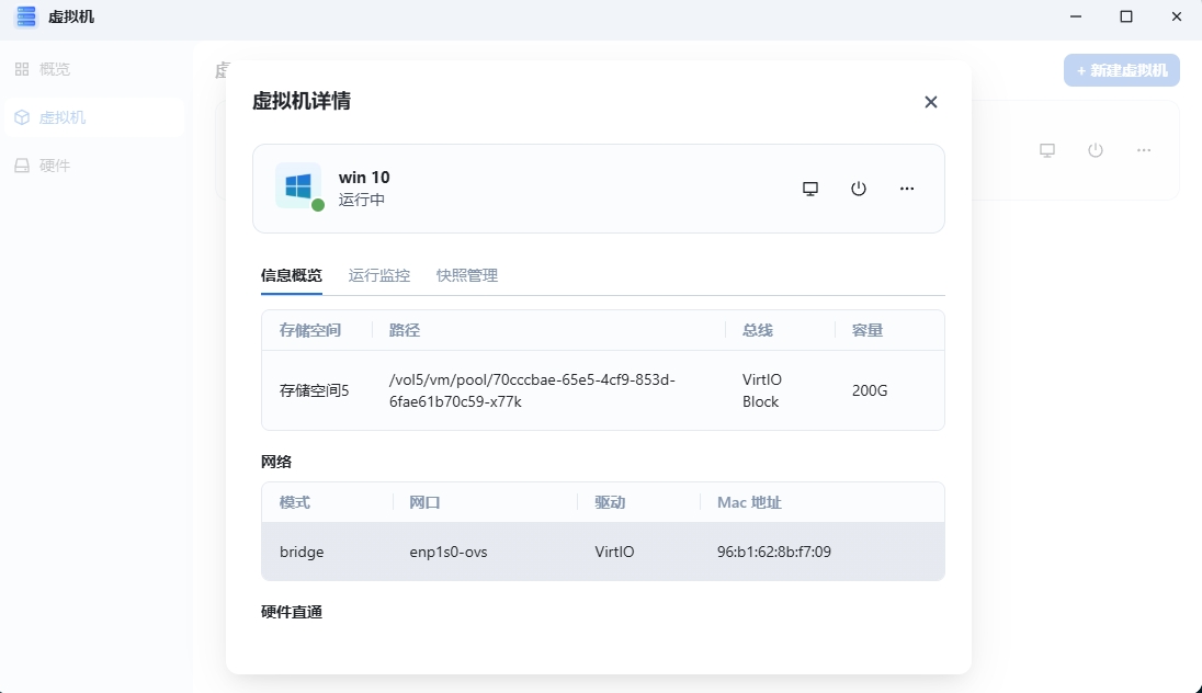 我也发现这个问题了,在虚拟机中装的win10下载了10G文件,飞牛vol1/vm/pool/目录下的虚拟机文件会增加10G大 ...