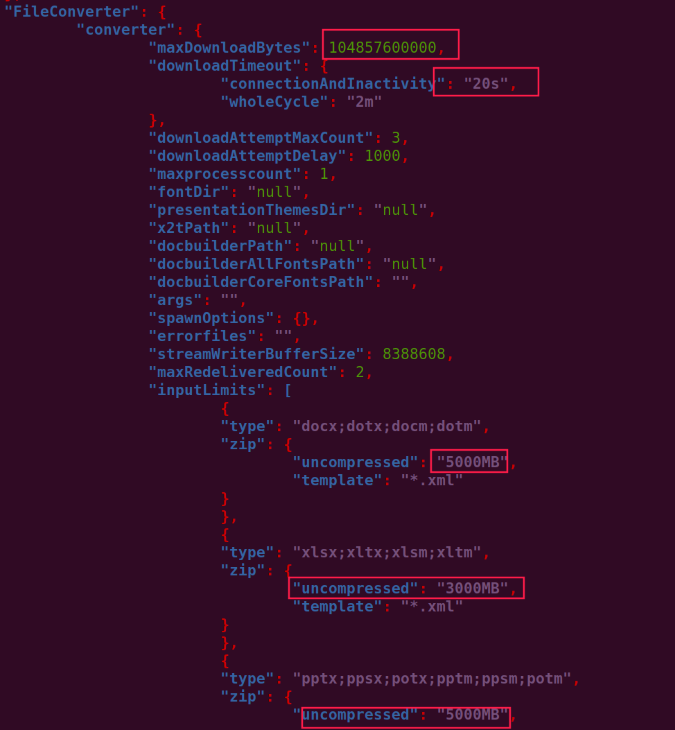 2.1找到"/vol1/@appmeta/trim.docs/documentserver/server/Common/config/default.json"