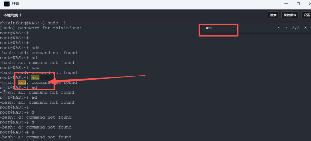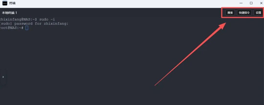 3️⃣ 进入本地终端,进去后就是常规的终端节目,很干净简洁,但是可以看到右上角有搜索按钮、快捷指令、设置按钮