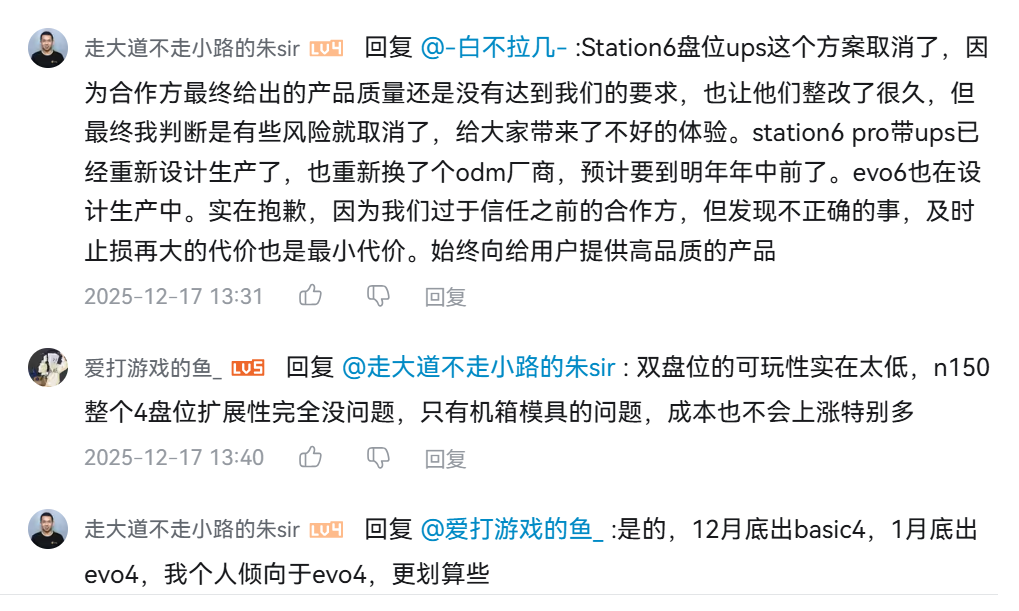 飞牛老板在B站说了,月底4盘位 basic,1月底4盘位 evo,6月 6盘位station ,请各位稍安勿躁