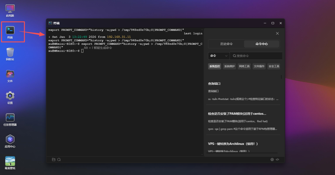 2️⃣也可以直接在WEB桌面打开终端命令直接使用