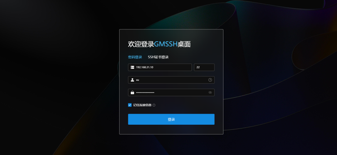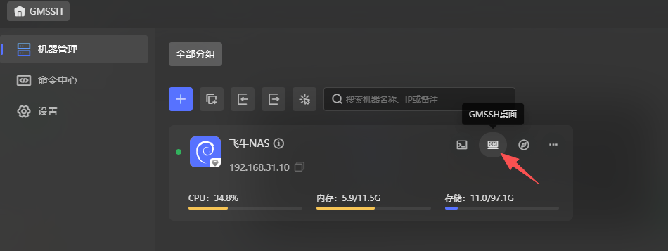 6️⃣进入 桌面管理web界面 ,点击GMSSH桌面按钮进入