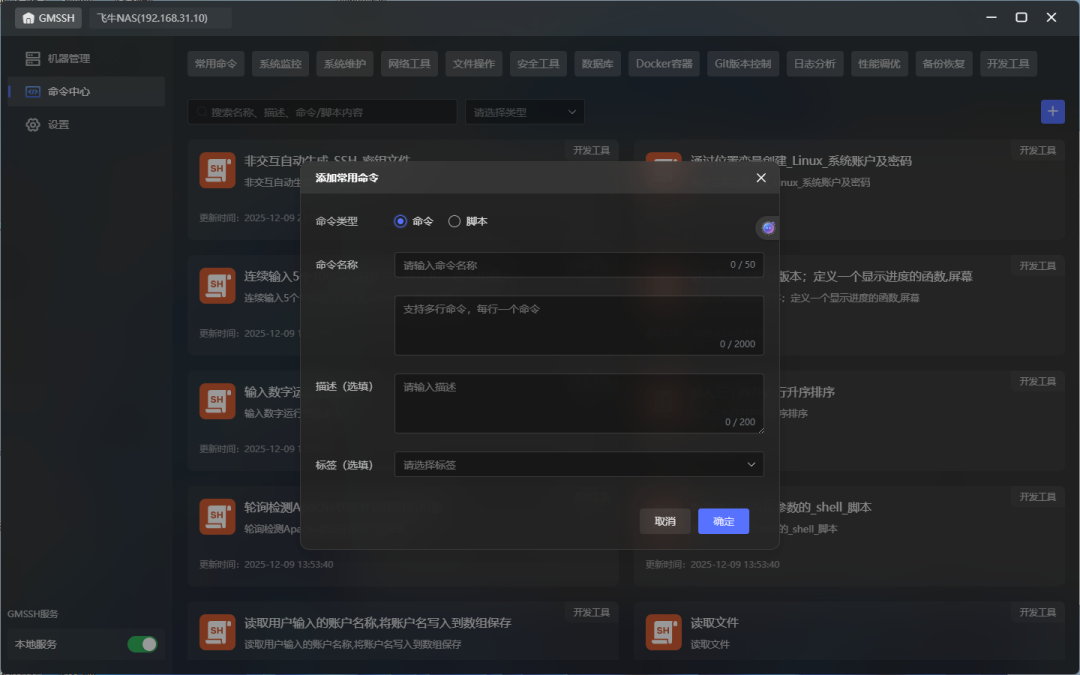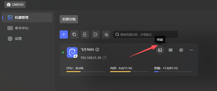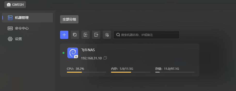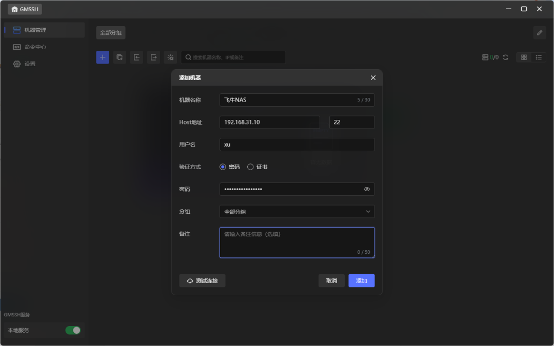 如果没有在Windows上安装GMSSH的朋友其实可以直接使用docker进行部署的,我使用飞牛Docker进行部署使用,docker部署的版本有点低,除了UI有差异,其他用起来无差