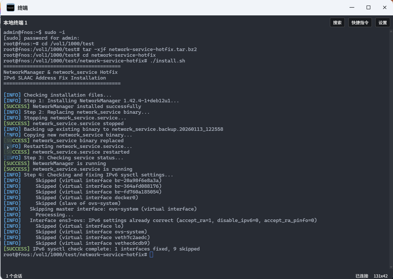 技术同学已定位问题完成修复,目前修复版本正在内测。当前版本可通过下面的方法进行修复,如修复后IPV6获取还有异常请通过发帖/私信联系飞牛技术同学,并提供联系方式会有官方工作人员联系你进行排查。
