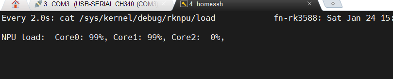 看一下NPU负载情况,这里开了2线程所以只有两个核心在调用,已经完美运行了