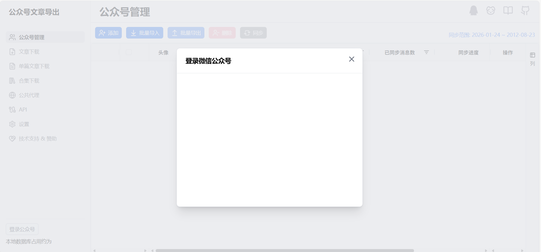 “公众号管理——添加”添加你需要导出微信公众号文章账号