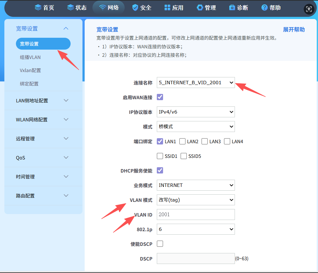 ⚠️记住这个VLAN ID,移动宽带需绑定特定VLAN ID;