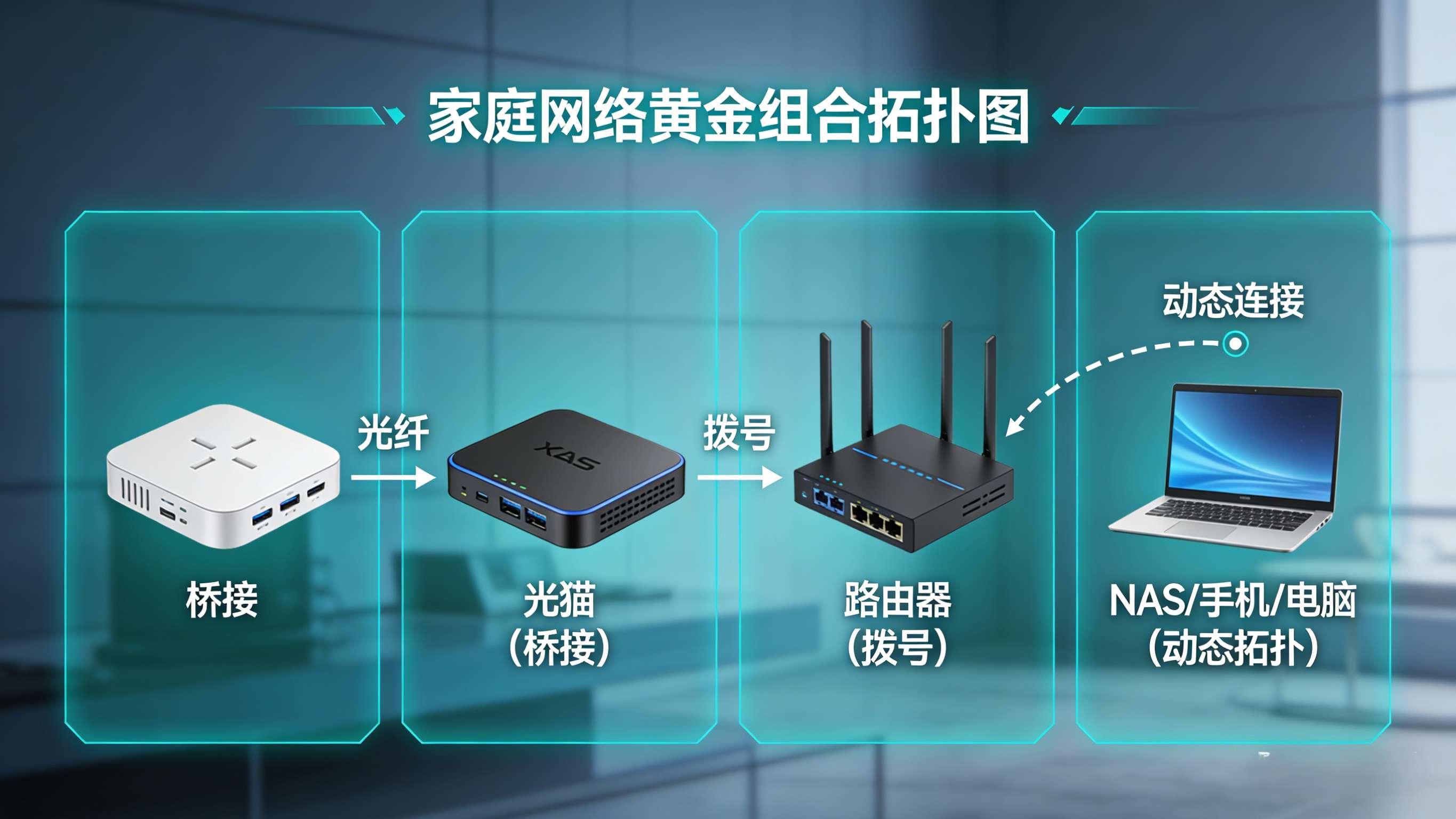 💡 核心价值:光猫桥接+路由器拨号 = NAS外网访问成功率100%+网络性能翻倍提升!