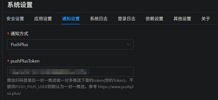 3. 青龙面板 → 系统设置 → 通知设置 → 通知方式 → 选择pushplus → 在"pushPlusToken"填入刚才复制的token即可。