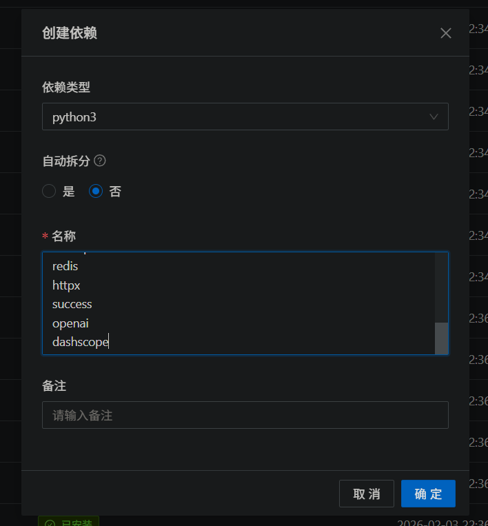 进入青龙面板 → 依赖管理 → 根据脚本类型选择对应分类 → 创建依赖。