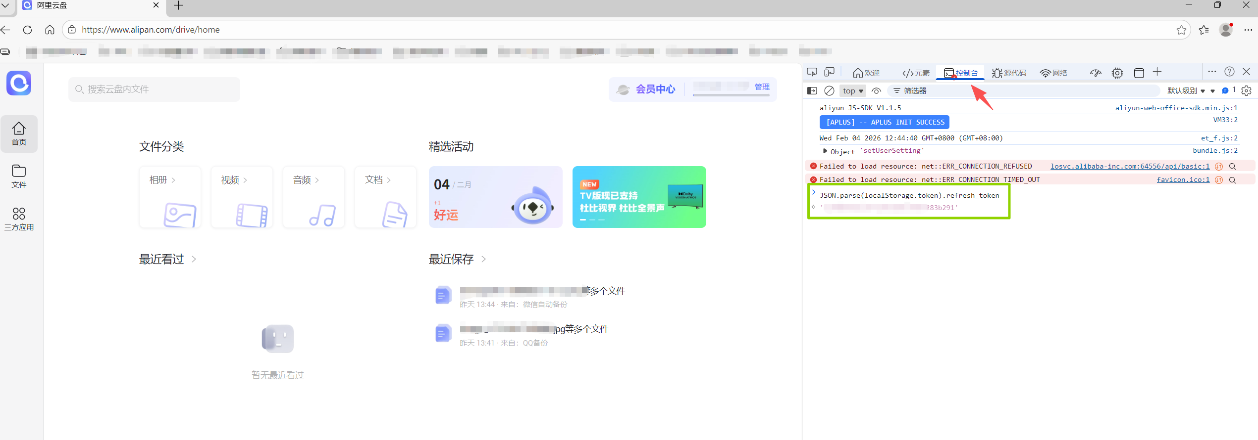 网盘签到需要 refresh_token 维持登录状态,获取方式基于官方网页端:
