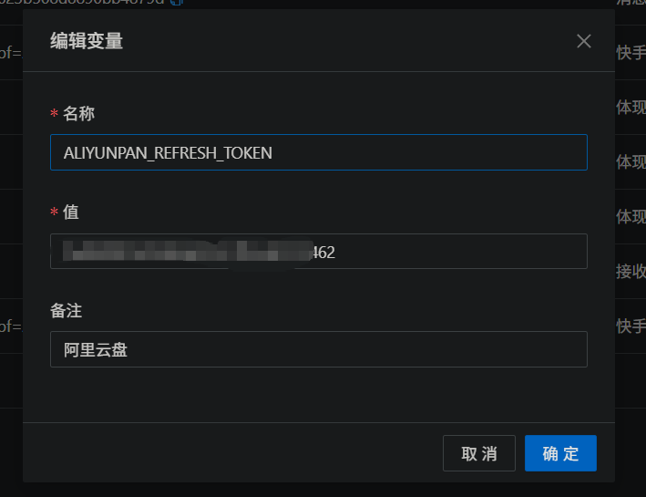 • 名称:ALIYUNPAN_REFRESH_TOKEN