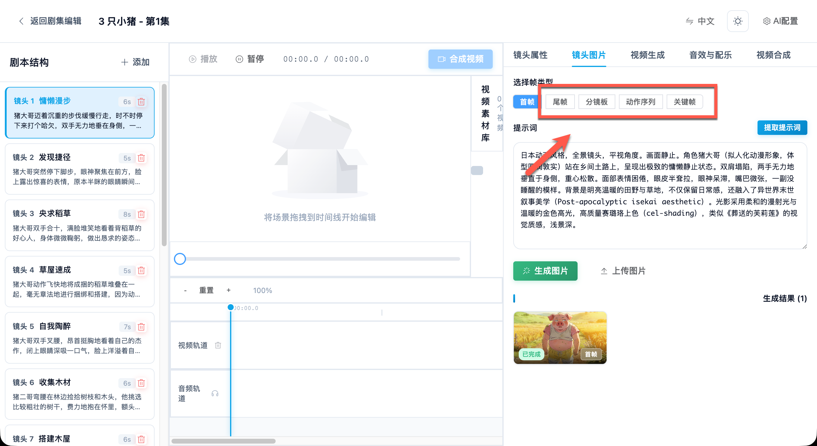 下面依次生成其他帧的图片(首帧和尾帧是最重要的,其他也可以不生成)