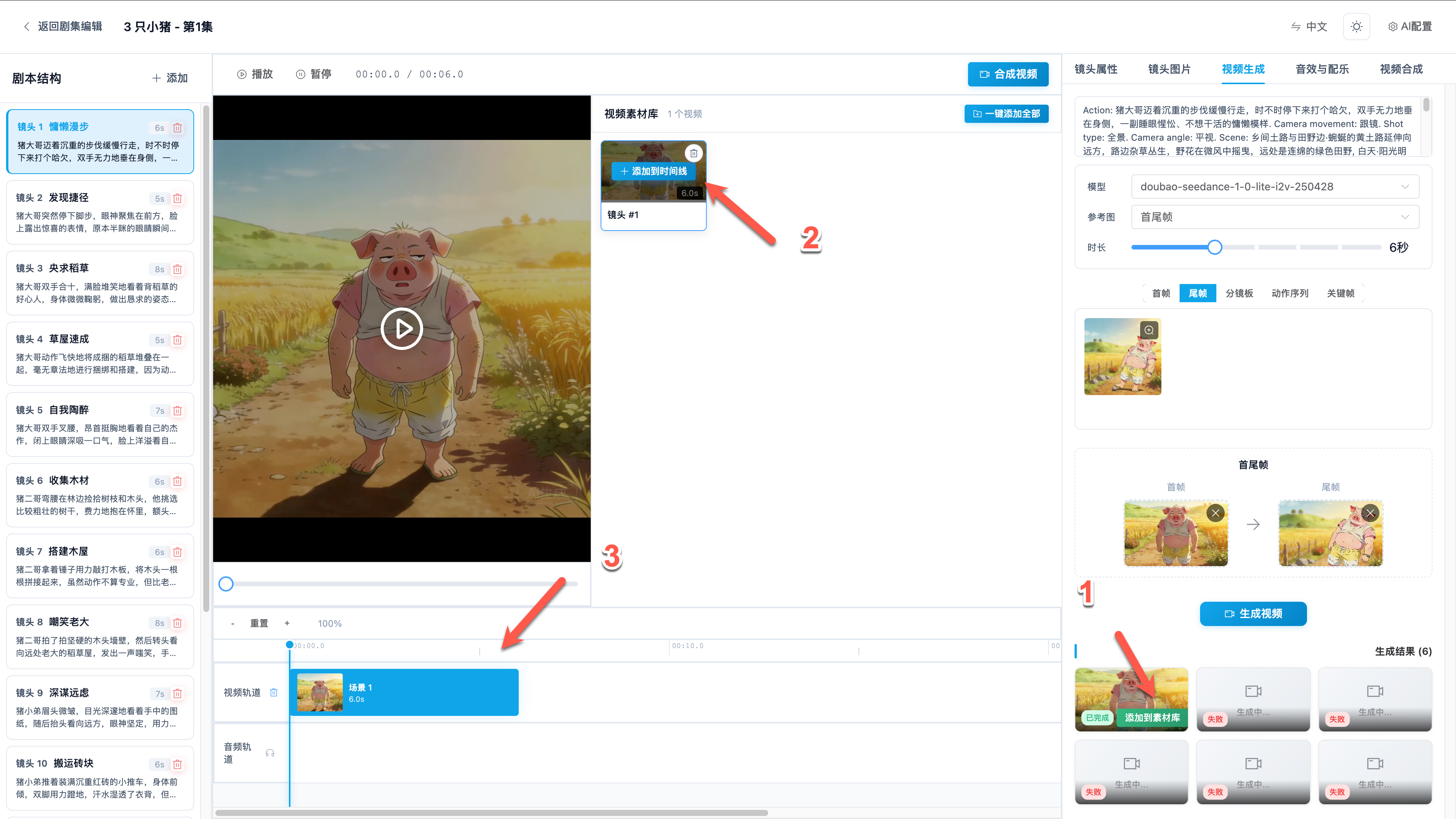 基本上流程就是这样,最后生成总的视频(还有其他分镜视频我就不生成了)
