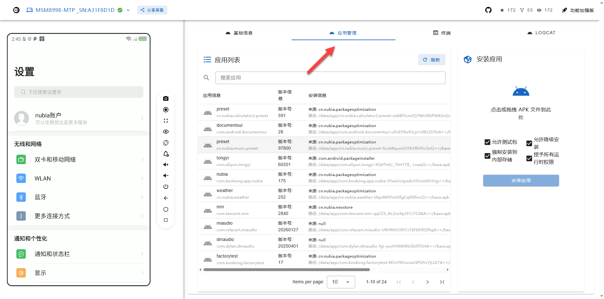仅需浏览器就能轻松连接安卓设备!不仅能流畅操控手机屏幕,还支持截图、录屏、应用管理等丰富功能,甚至可访问终端执行命令。不管是办公摸鱼便捷操作手机,还是日常调试管理设备,都是实用性拉满!