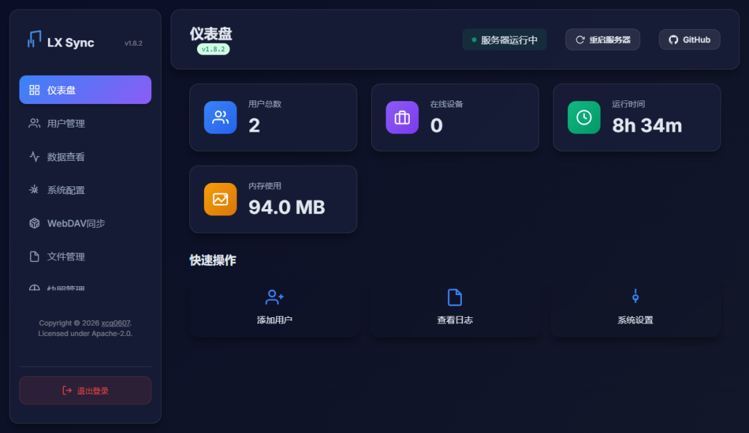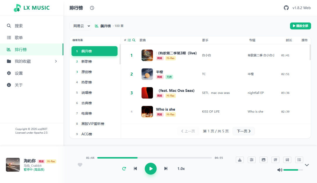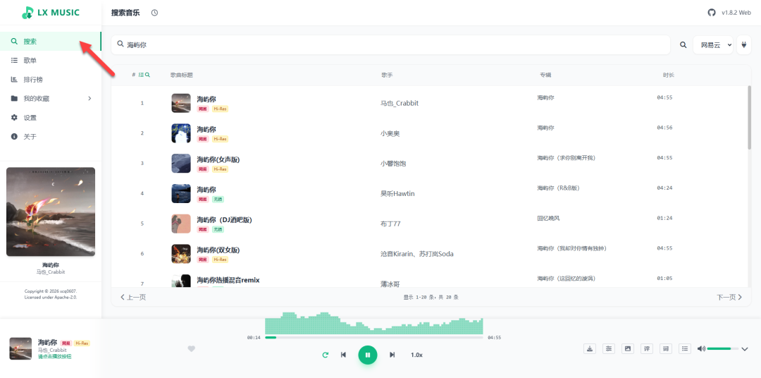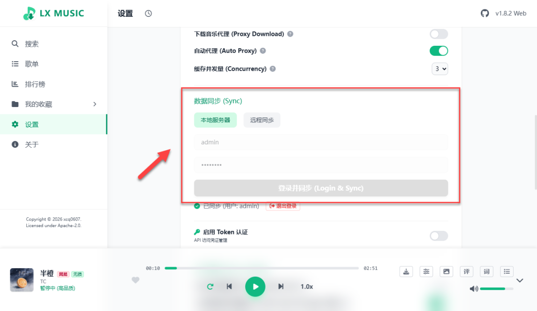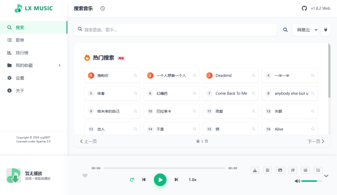 一款支持各大音乐平台搜索、**以及数据云端同步的服务系统。内置的高性能 Web 播放器,提供原生 App 般的音乐体验。