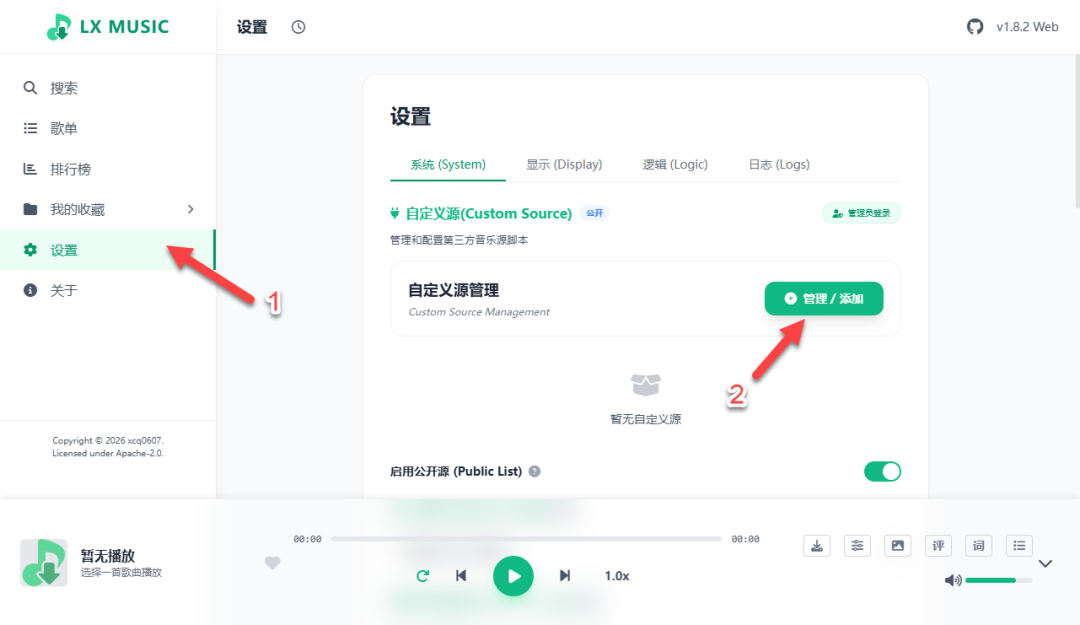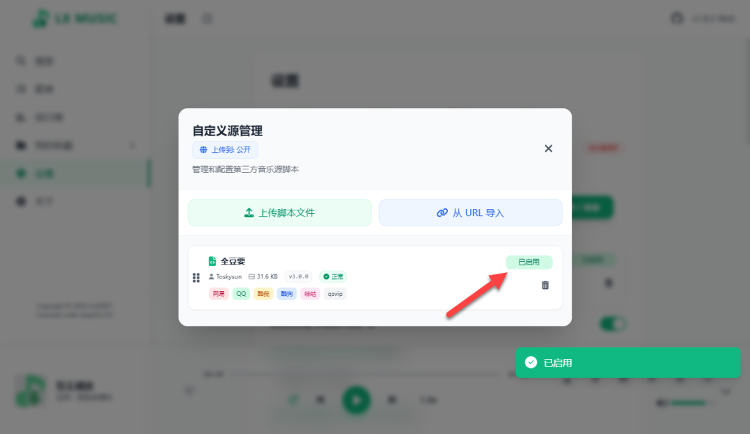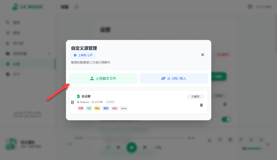 上传音乐源(JS 文件),可能需要输入密码:123456
