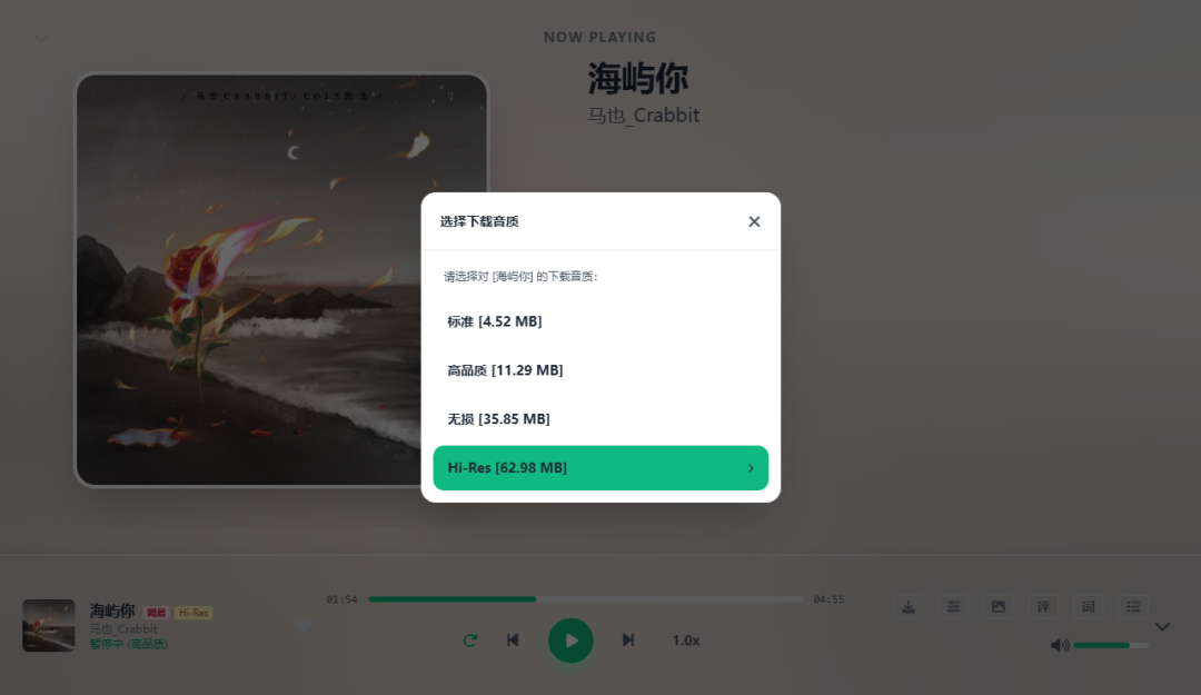 音质最高支持到无损和 Hi-Res(真不真无损不清楚,大小体积摆在这里)