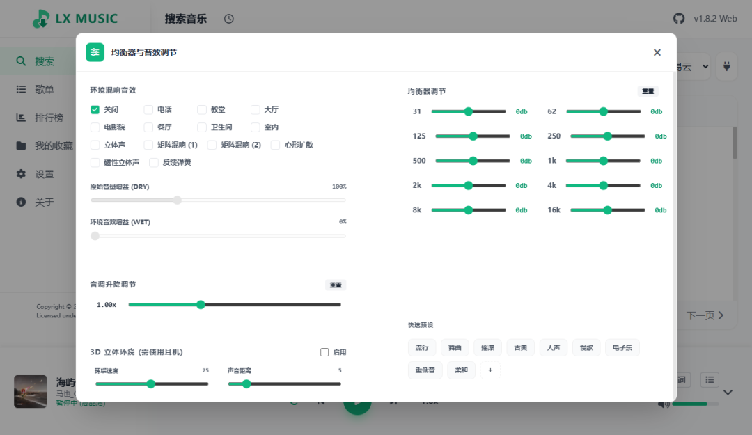 支持均衡器与音效调节,看起来很唬人