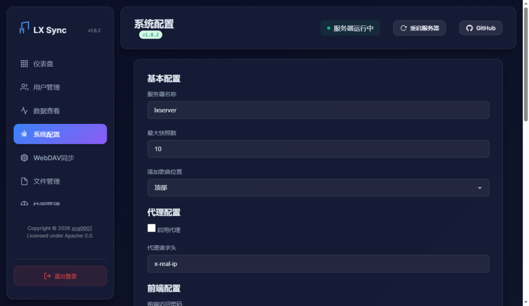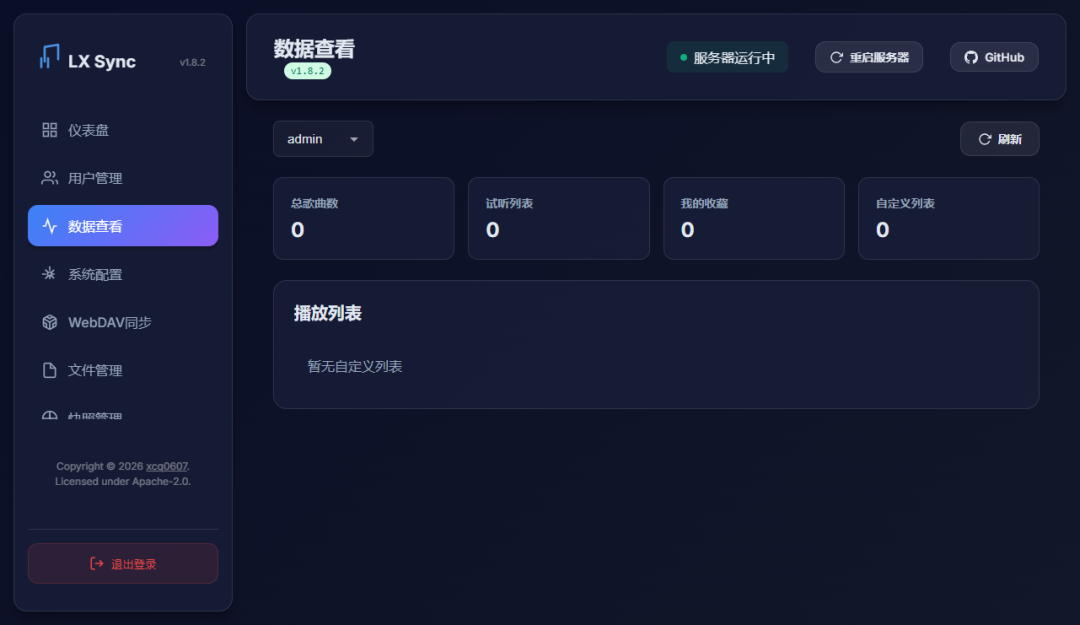 LX Music 我个人使用下来的第一感受就是功能挺多挺齐全的,有可以**的前端界面,也有后台管理面板,已经可以说是比较完整的一个私有音乐平台了。不过很多细节方面还有很大的提升空间,比如操作交互, UI 组件模块和排版自适应。