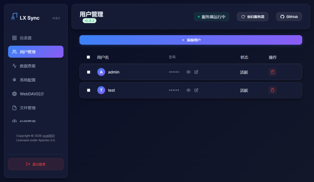 TIP:如果需要同步数据和创建歌单用户,可以创建登录账号,连接后台服务器(不清楚密码,可以在用户管理查看)