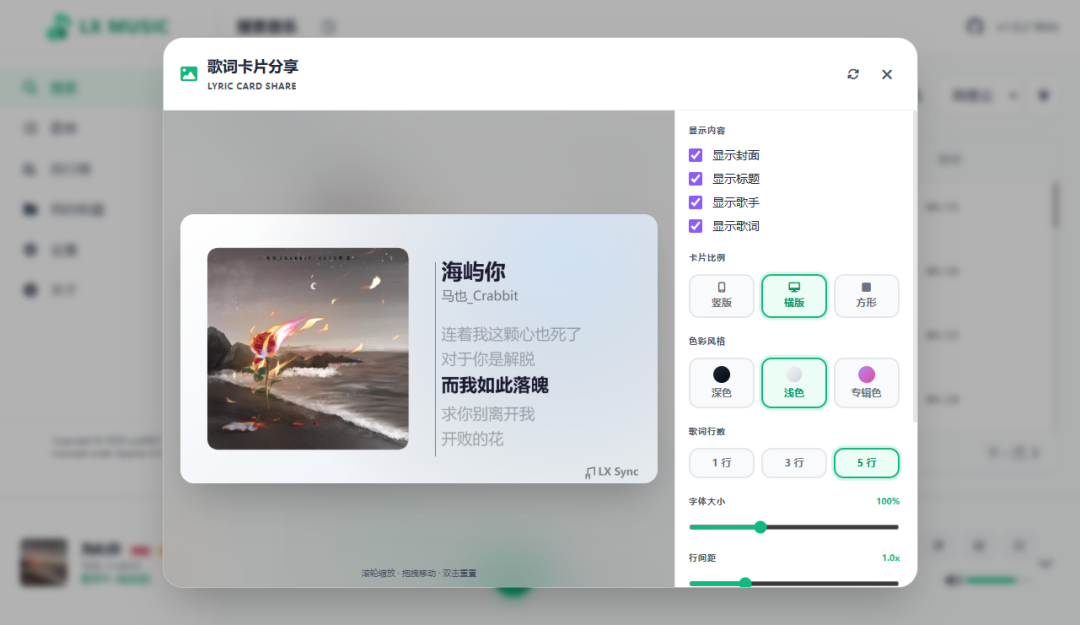 可以生成歌词卡片进行分享,说实话有点丑