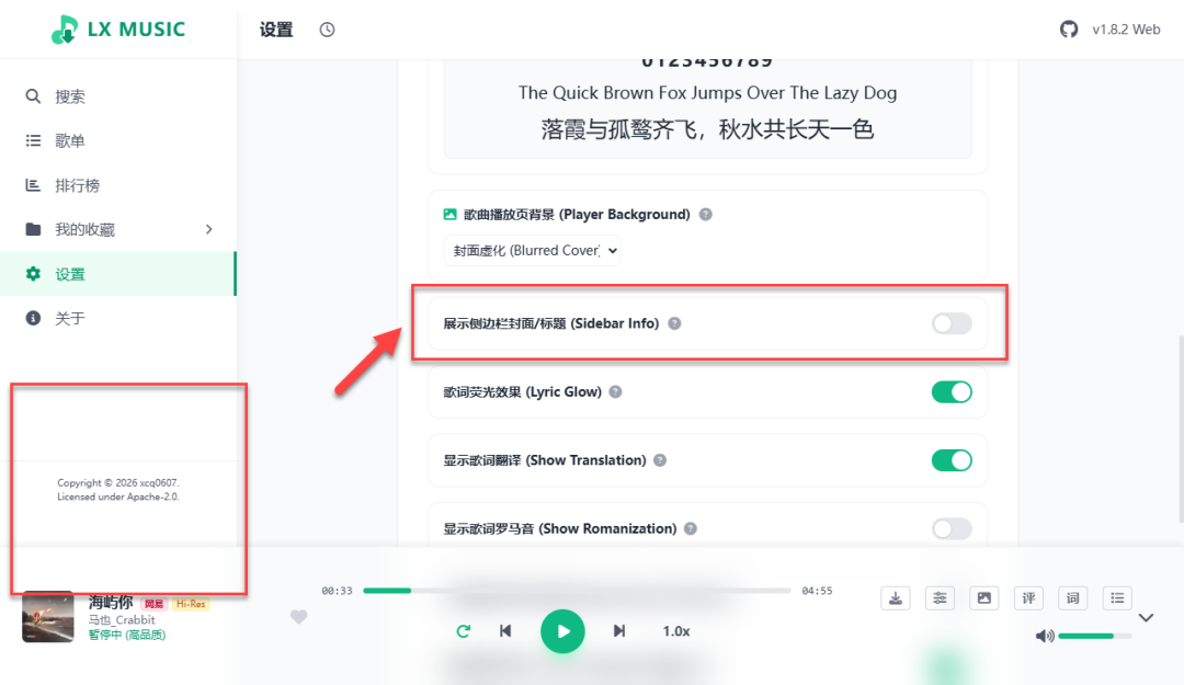 TIP:如果不喜欢侧边栏封面,可以在设置-》显示里关闭
