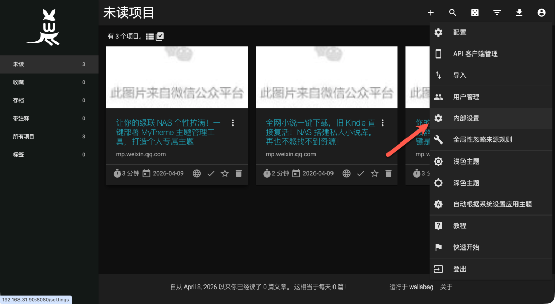 NAS 部署 wallabag:把网页装进本地,离线阅读再也不怕内容下架!
