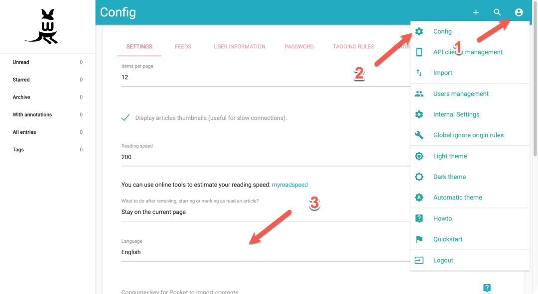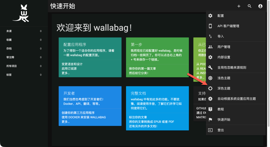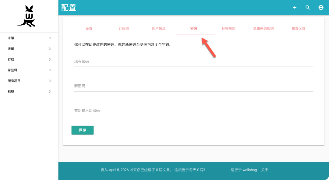 初次进入程序,默认管理员账号和密码都是:wallabag