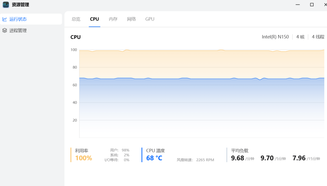 ▲CPU温度满载状态: 68℃