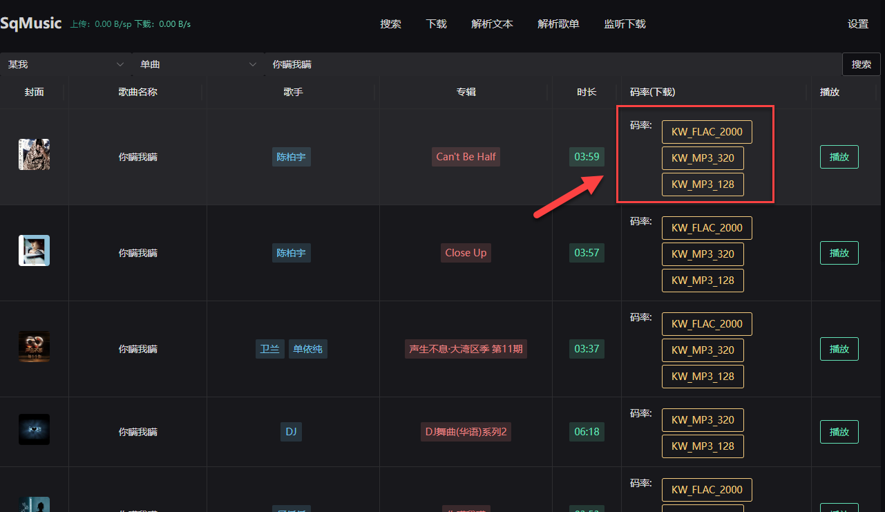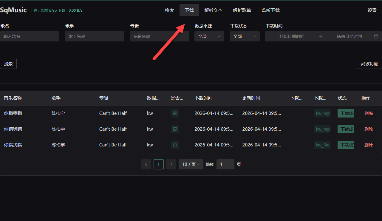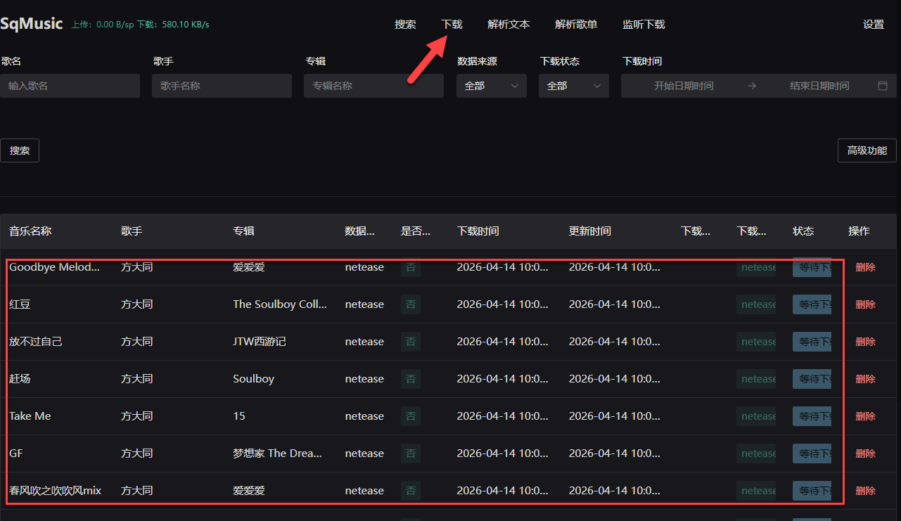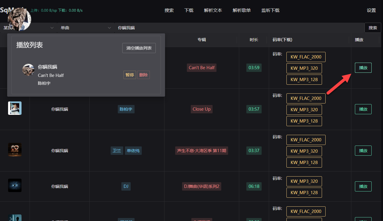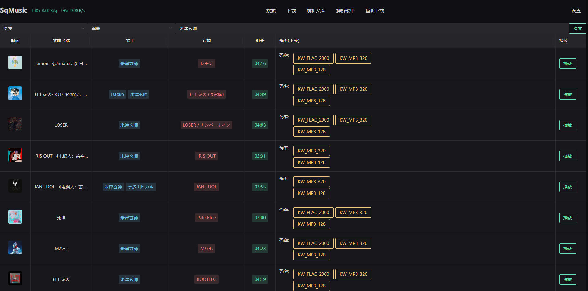 还支持解析文本和歌单下载音乐,这里我就不演示了