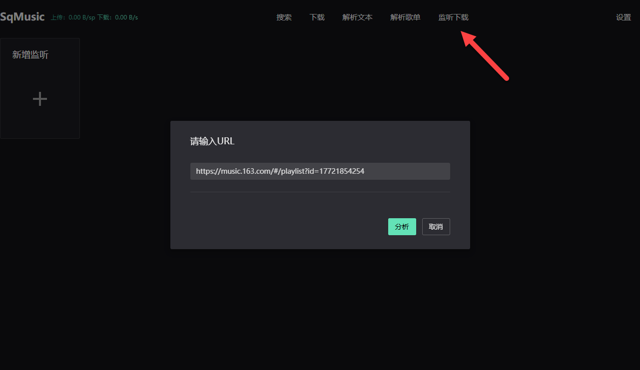 监听下载是最方便的,将**云的歌单链接添加到监听列表