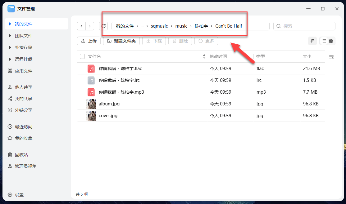 来到 NAS 的映射路径,可以看到前面下载的音乐(下载了 3 种不太音质的)