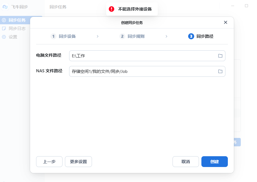 更新前正常使用,刚刚更新后就不能用了,删除了同步任务,准备重新添加试一下,结果提示不能选择外接设备,我用的是U盘,之前都可以啊,为什么要限制这个