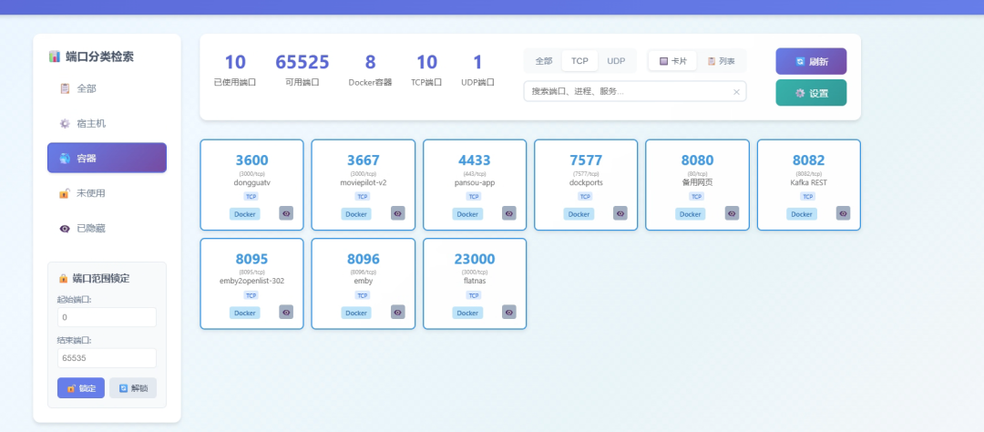• 可视化展示:卡片式 UI,直观展示端口分布