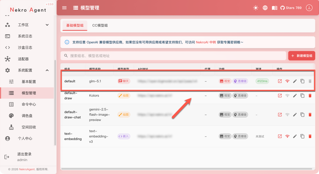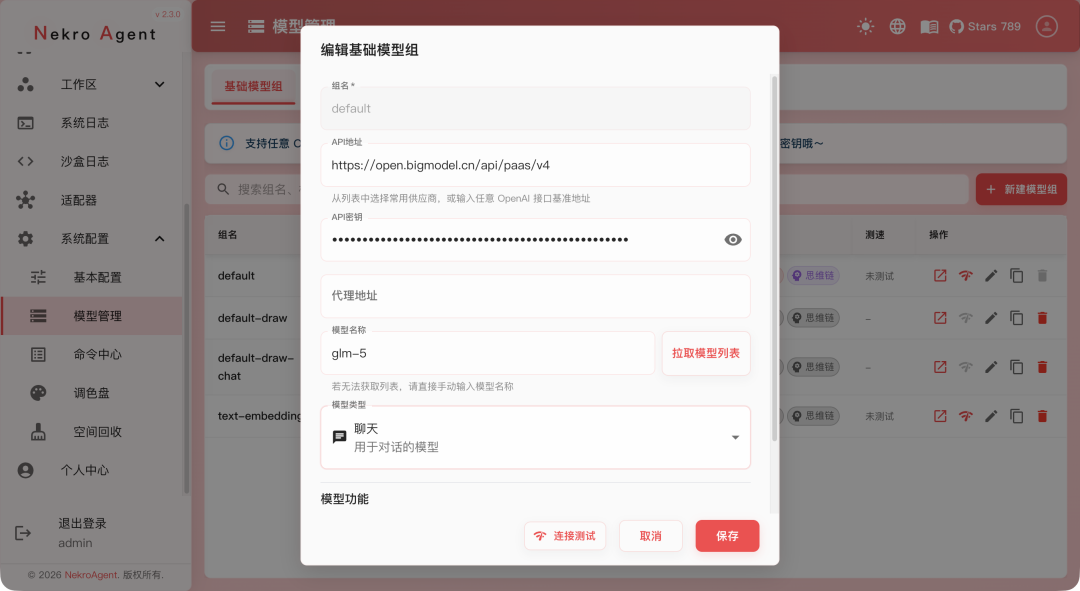 系统配置 -》 模型管理,先配置模型(可以添加新模型,我是直接修改原来的配置)