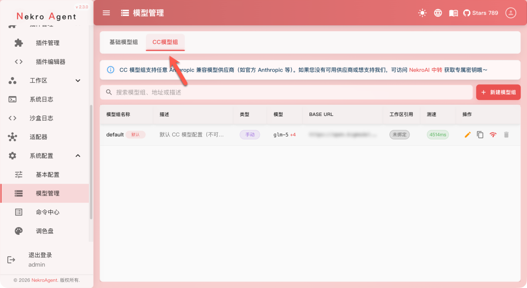 CC 模型组也可以同样配置一下