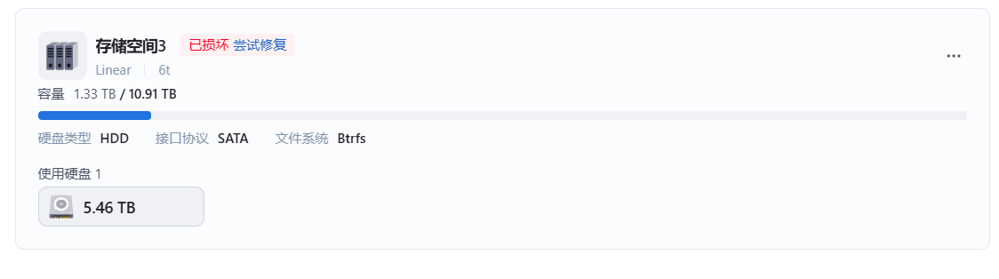 故障现象:(怕硬盘坏,我要备份数据,在存储空间3那里 点击的添加硬盘,添加成功了. 发现 不能区分出2块硬盘空间, 不知道怎么删除后添加的硬盘 ,物理上拔掉了, 提示"已损坏尝试修复" 不知道怎么操作了)