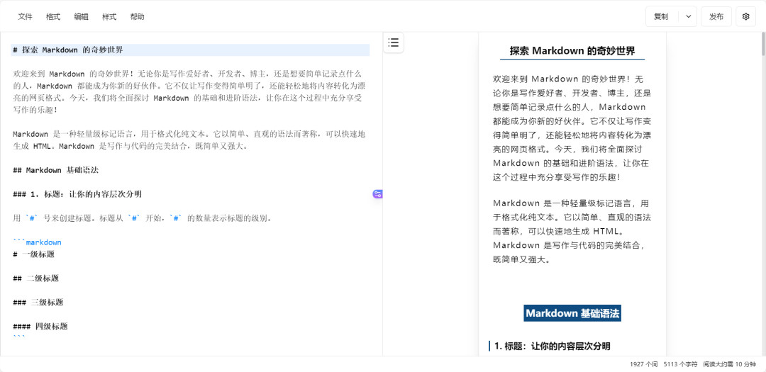 给大家推荐一款 Markdown编辑器,能帮你快速写作或者预览,还能一键转换成微信公众号格式,省去了复杂的排版操作。对于经常需要写公众号、博客或技术文档的朋友来说,简直就是效率神器。它是一款轻量、支持主题自定义、多图床、AI