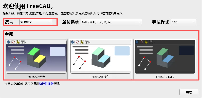 更改默认语音为中文,,选择自己要使用的导航样式,后期也能更改,并且选择一个自己喜欢的主题风格,点击完成