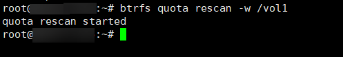 btrfs quota rescan -w /volx(x为对应的存储空间)