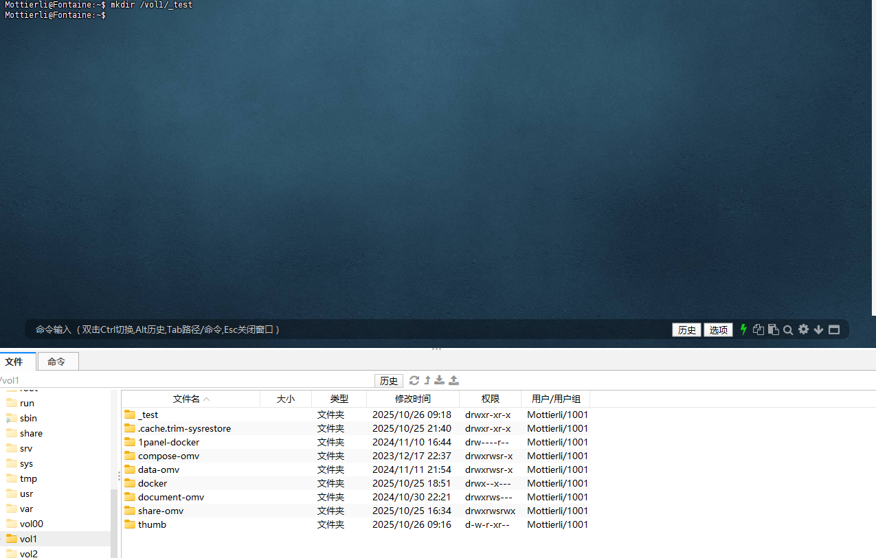 更新2,看了B站 -老湿机- 的tureNAS导入飞牛教程,尝试mkdir /vol1/1000,失败,提示mkdir: cannot create directory ‘/vol1/1000’: Operation not permitted