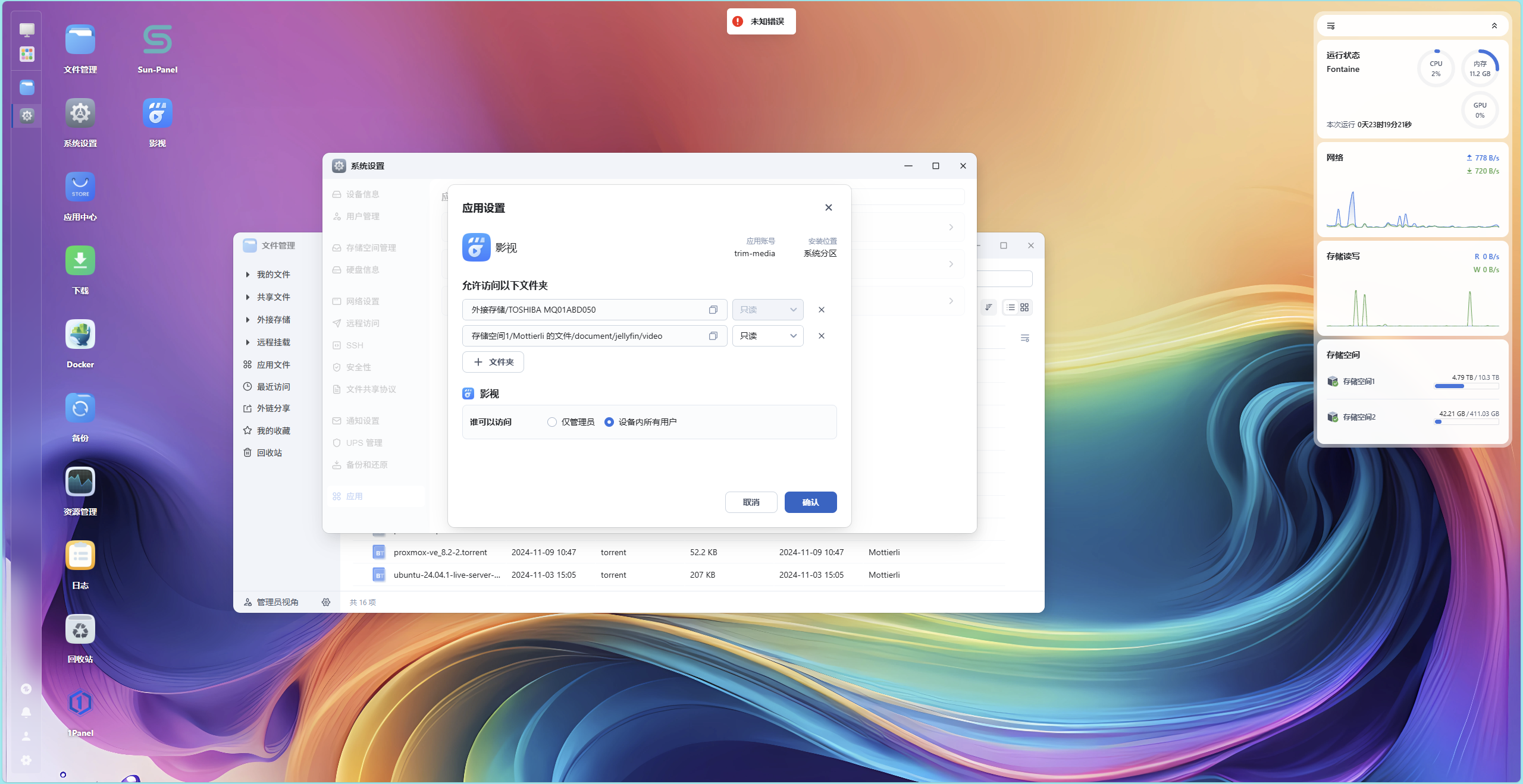 飞牛影视等app无法使用其中的文件夹作为媒体文件夹,显示未知错误