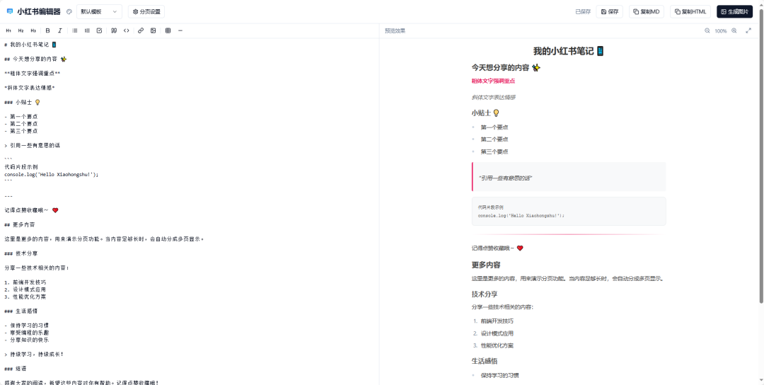 无论复制到 微信公众号编辑器 还是 小红书后台, 排版都稳稳的,不错位、不掉格式,唯一的缺点就是不能调间距,希望后期能看支持。
