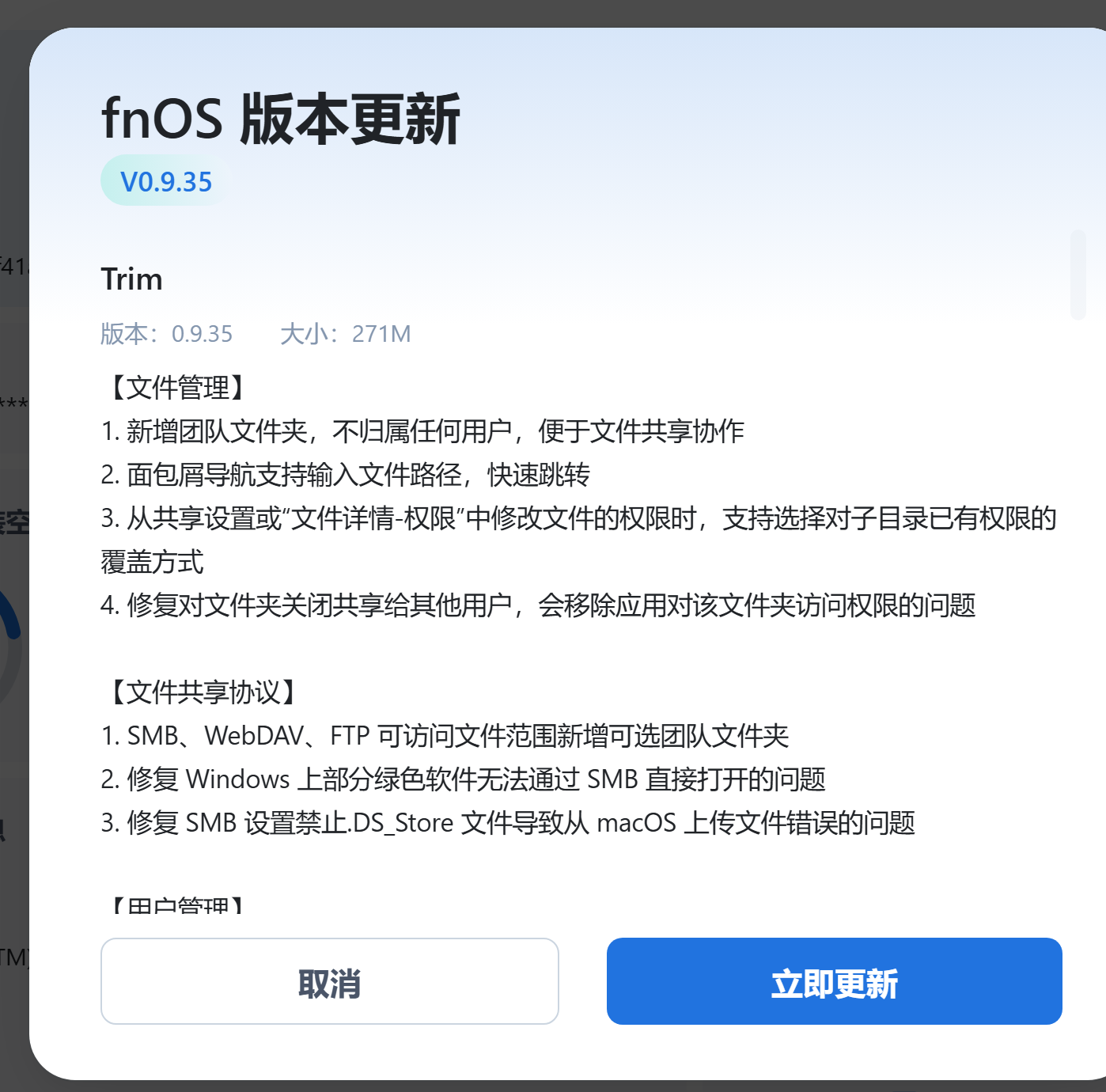 各位飞牛玩家周五好~在此,衷心感谢大家对系统问题的反馈,是你们的关注与支持,让 fnOS 不断完善、变得更好。