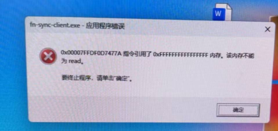 8. 飞牛同步PC端出现应用程序错误提示