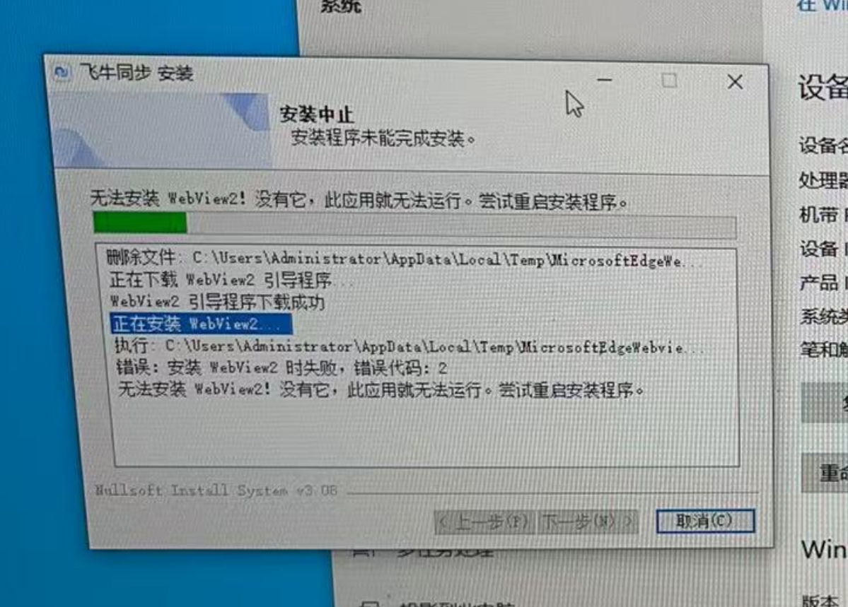 7. 飞牛同步安装时出现”无法安装WebView2“