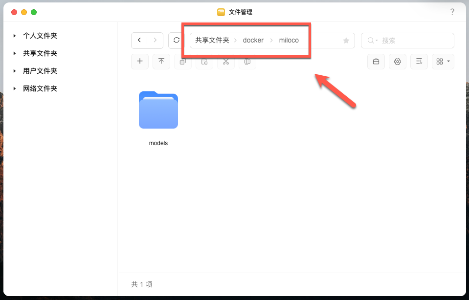 创建 miloco 文件夹,里面再创建一个 models 文件夹