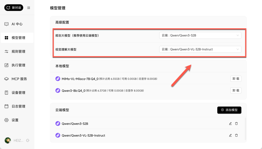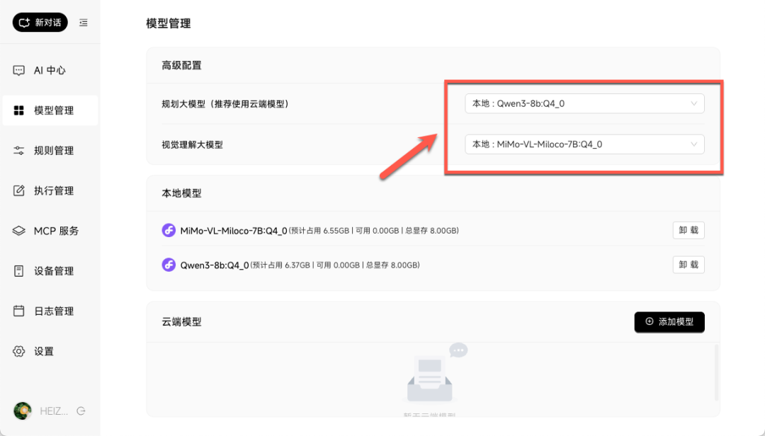 加载模型后,在上面分别选择模型(视觉模型有敏感需求的,还是本地部署比较好)